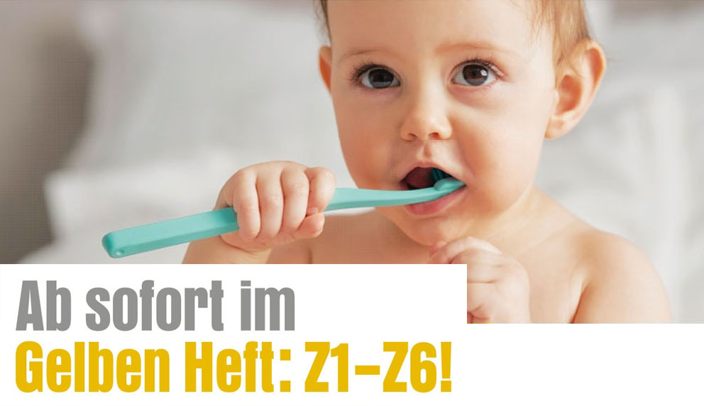 Ab 01.01.2026 werden die Ergebnisse der zahnärztlichen Früherkennung im Kinderuntersuchungsheft dokumentiert. Hierzu hat der G-BA eine Änderung der Kinder-Richtlinie und der FU-Richtlinie beschlossen. Bestandshefte werden durch entsprechende Einlegeblätter ergänzt. Neugeborene erhalten ab 2026 das neue „Gelbe Heft“, welches die zahnärztlichen Früherkennungsuntersuchungen unter der Bezeichnung Z1 bis Z6 enthält.